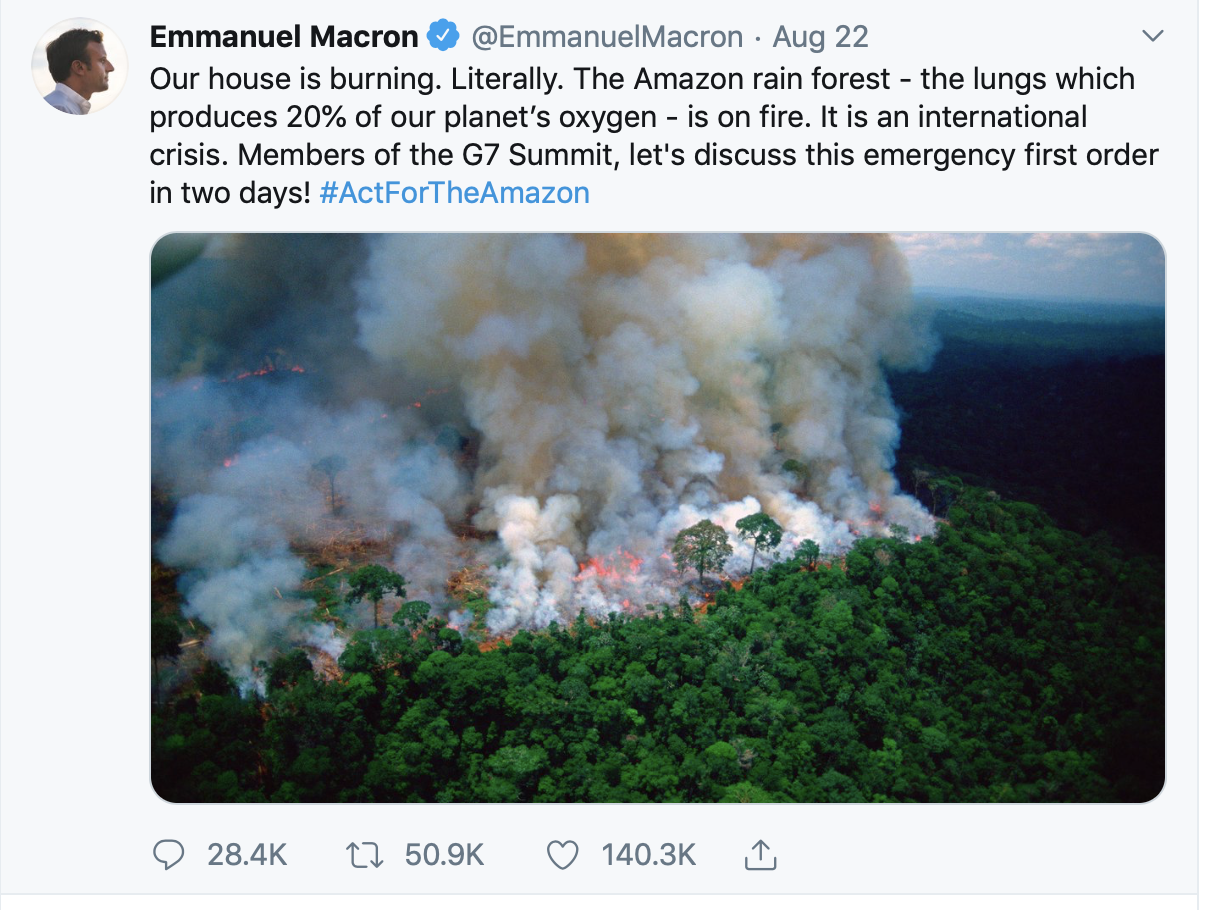 He has also threatened to block an EU trade deal with Brazil and its neighbouring countries which accounted for 20.1% of exports in 2018 and has done so in response to their handing of the forest fires by governments in the region. Macron said that Bolsonaro had lied to him at the Osaka summit earlier in June about his stance on climate change. However, Bolsonaro insists that Macron is taking this action solely for political gain.