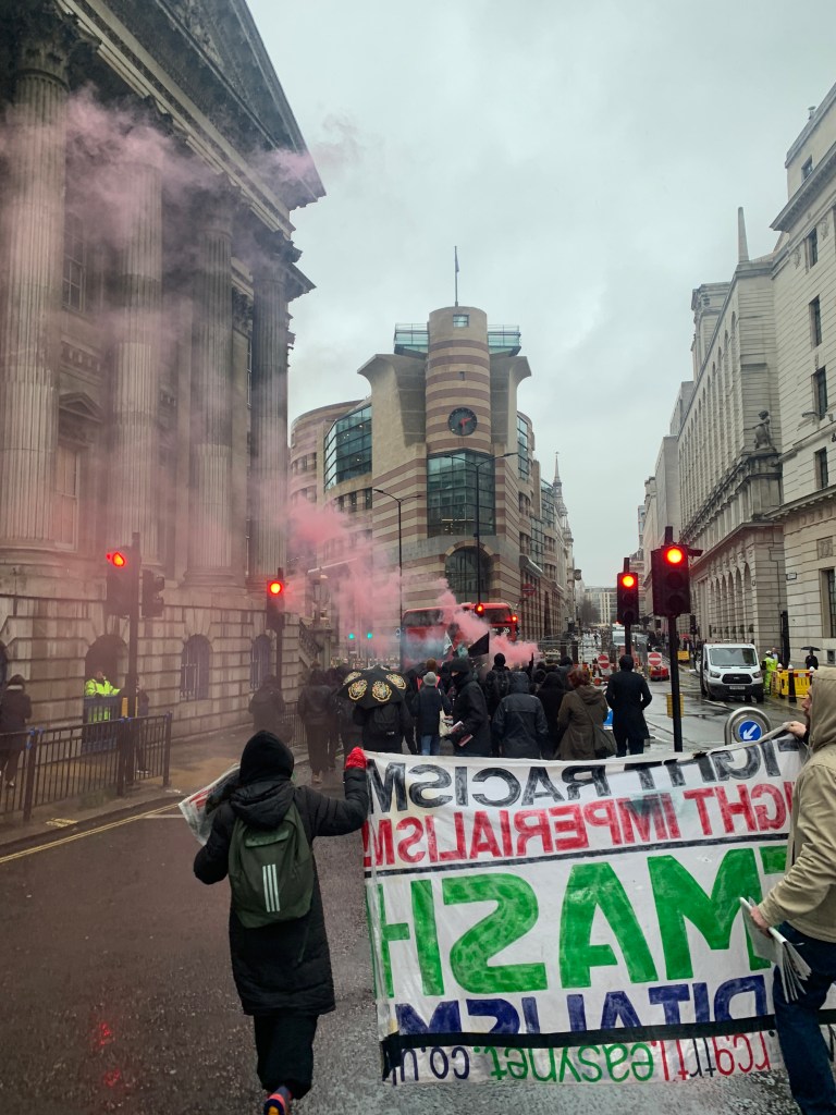 Anarchist protesters head out on the streets of central London demanding changes to political structure and environmental policy.
